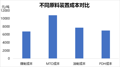我們在從不同裝置生產(chǎn)聚丙烯成本對比來看: