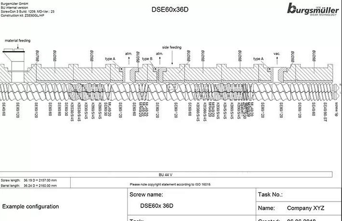 因此,配混商們可以將Burgsmüller ScrewCon軟件提供的完美的螺桿配置集成到生產(chǎn)文件中并用于作業(yè)計劃。目前的資料庫大約有3000種螺桿和料筒外殼組件可供不同品牌、類型和規(guī)格的雙螺桿擠出機選用。這允許針對特定的機型和應用而設(shè)計訂制的配置,如果所需要的組件不可獲取,Burgsmüller還可以利用機器所有者們手中的基礎(chǔ)數(shù)據(jù)輕松地添加它們。
