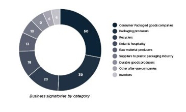 自“新塑料經(jīng)濟(jì)全球承諾書”發(fā)起四個(gè)月以來,簽署承諾書的企業(yè)數(shù)量由100多個(gè)增加到150多個(gè)。參與企業(yè)的數(shù)量占據(jù)了超過全球20%的塑料包裝企業(yè)。